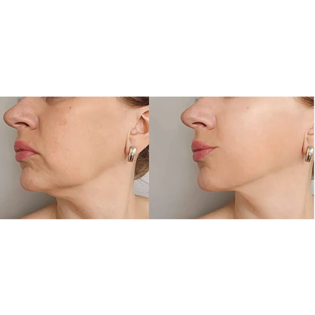 Dès les premières utilisations, la peau paraît plus ferme et liftée. Un usage régulier accentue les résultats visibles sur l’ovale du visage.